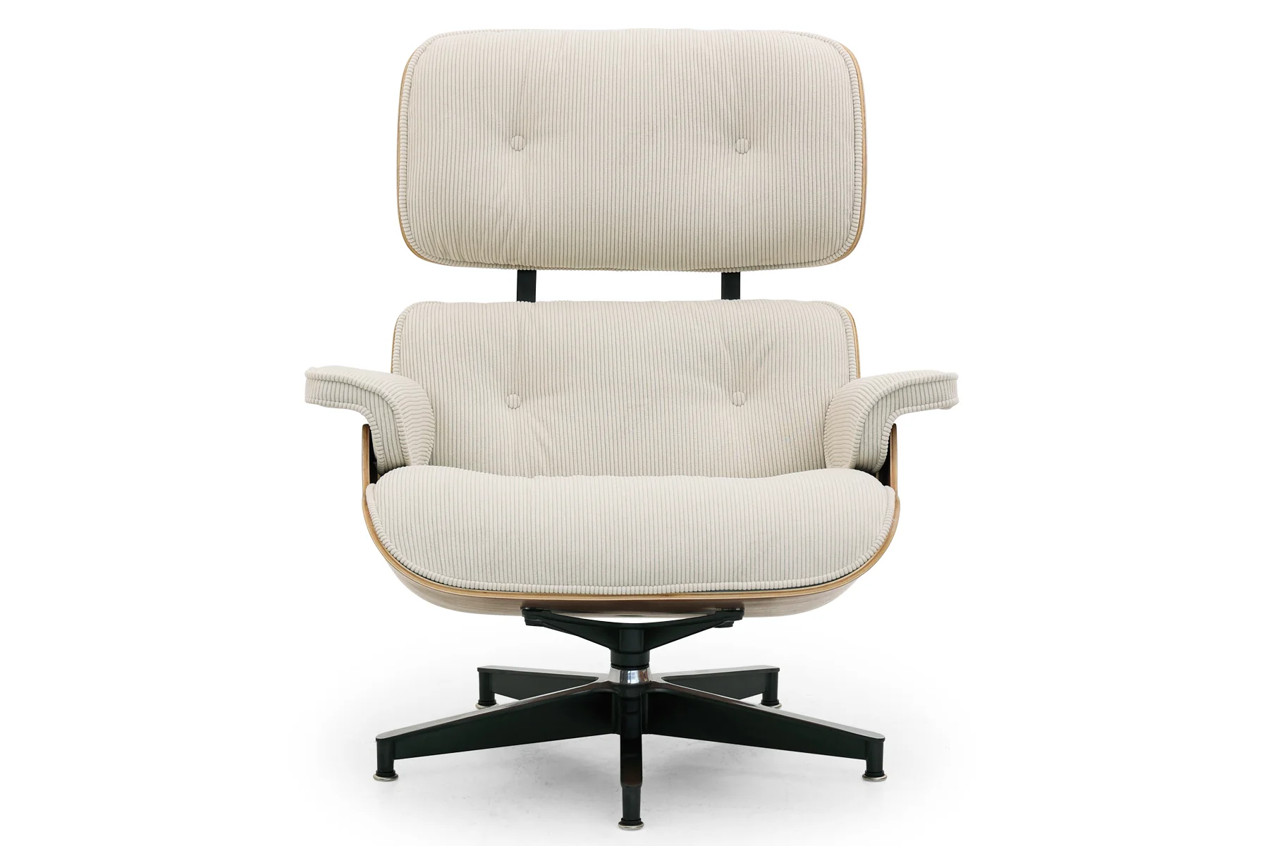7 floor plywood with the walnut or rosewood veneer, High-density moulded PU foam, Die-cast Aluminum Base with Swivel |